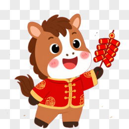 中国马年拿着鞭炮的小马IP形象免扣元素