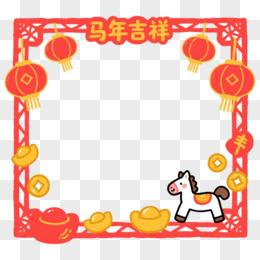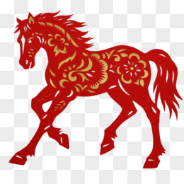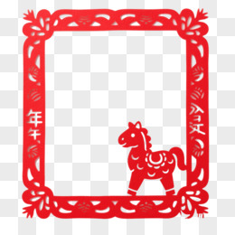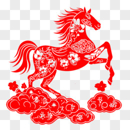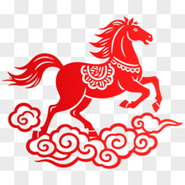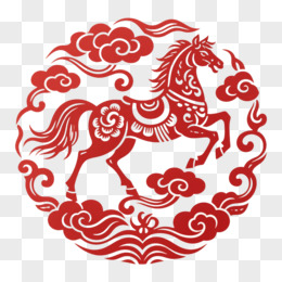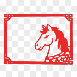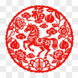 一组卡通剪纸风十二生肖套图之剪纸马免抠元素