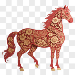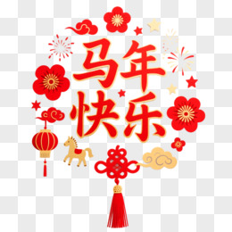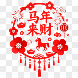 红色剪纸风格新年2026年马年艺术字免抠元素