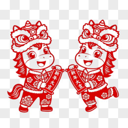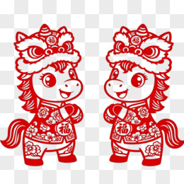 红色剪纸风格新年2026年马年艺术字免抠元素