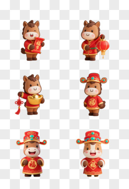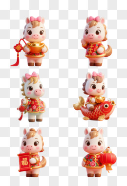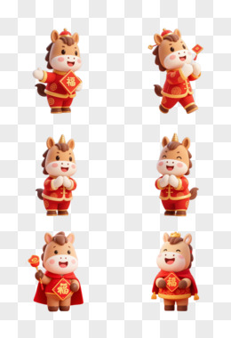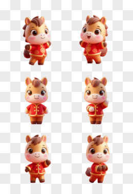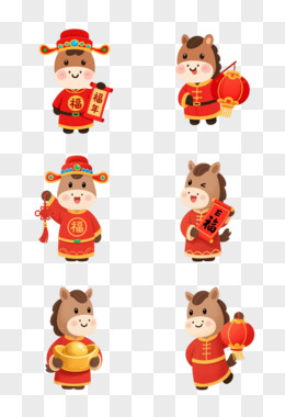 马年喜庆卡通形象拟人IP免抠元素
