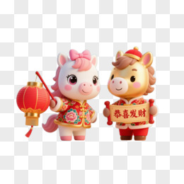 一对2026喜庆卡通马年IP形象免抠元素合集