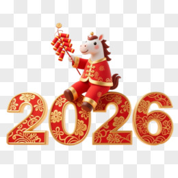 3D卡通一匹身上有着红色祥云图案的金色马免抠元素