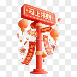 创意马年新年指示牌免抠元素