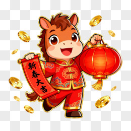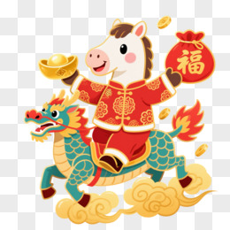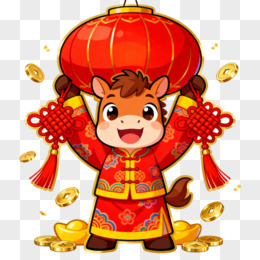 卡通手绘锦鲤和马年可爱小马免抠元素