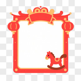 红色马年灯笼木马边框免抠元素
