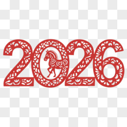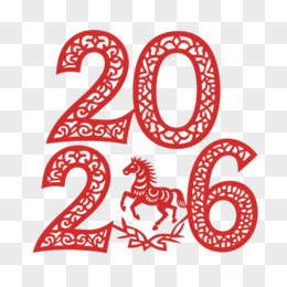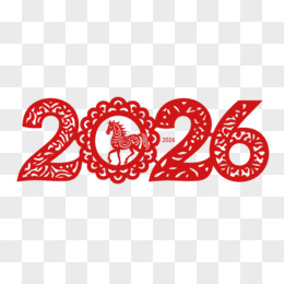 红色剪纸风格新年2026年马年艺术字免抠元素