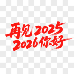 红色毛笔风格新年2026年马年艺术字免抠元素