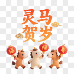 金马贺岁马年春节艺术字免抠元素