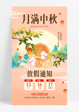中秋放假通知玉兔月饼粉色渐变全屏海报海报