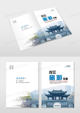 毛笔刷泼墨背景旅游书籍封面龙江旅游画册