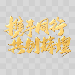 携手同行共赢辉煌创意毛笔字金色立体设计
