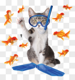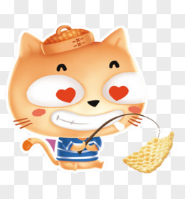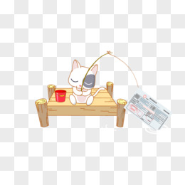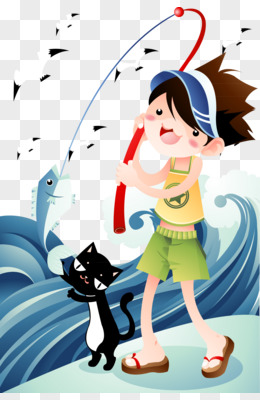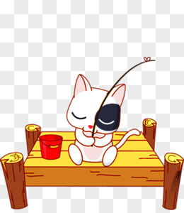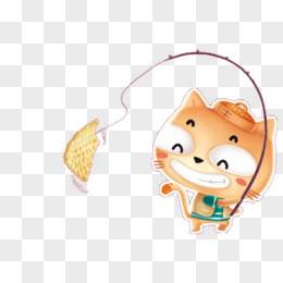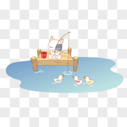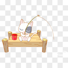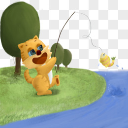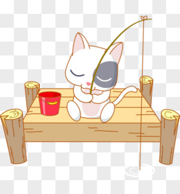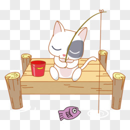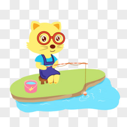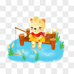卡通插画风小猫钓鱼绘本故事免抠元素