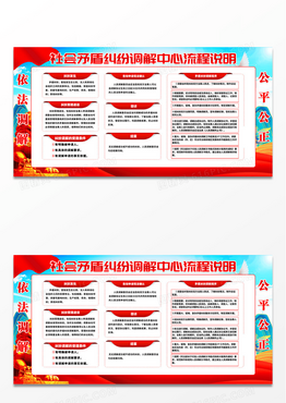 蓝色社会矛盾纠纷调解中心流程说明展板