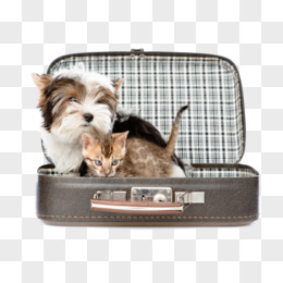 宠物酒店标志与一只狗和一只猫在屋顶线图标