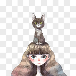 扁平卡通风格草坪上露营的女孩和猫咪免抠元素