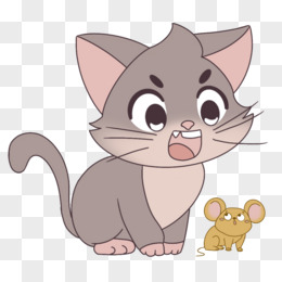 手绘彩色猫要吃老鼠素材