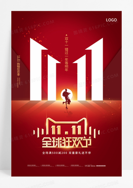 红色简约天猫剪影创意双十一海报