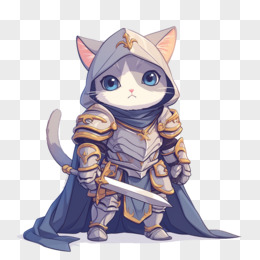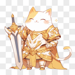 卡通风可爱的猫穿着铠甲拿着剑免抠元素