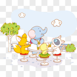卡通小动物聚餐矢量图