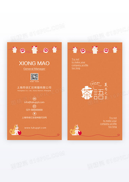 简约可爱插画风猫咪元素茶饮店竖版名片设计