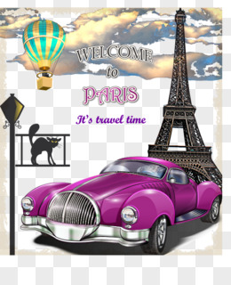复古巴黎紫色轿车矢量素材下载,