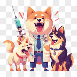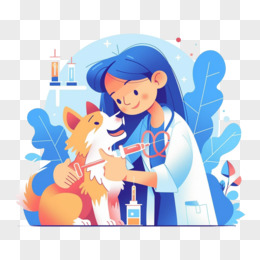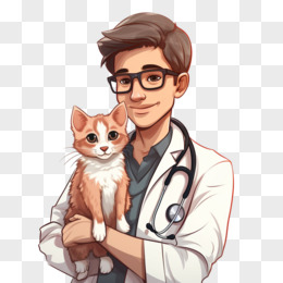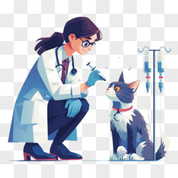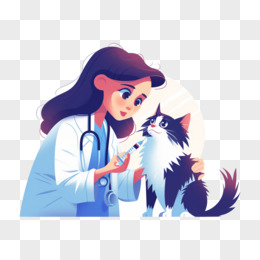卡通手绘宠物医院导诊台场景插画元素之医生和猫