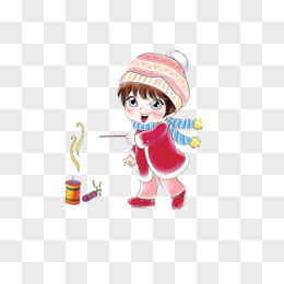 卡通手绘冬季拿着树枝的女孩免抠素材