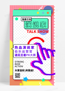 像素风马赛克演说演讲表演话筒主持人辩论赛辩论手机宣传海报