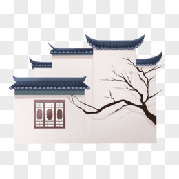 仙鹤马头墙古风古建筑简笔画免抠元素
