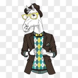 手绘卡通一个穿西装的马头人对着电脑打字免抠元素