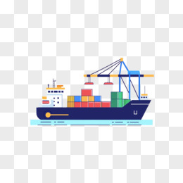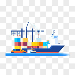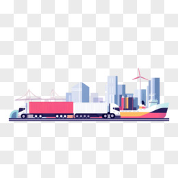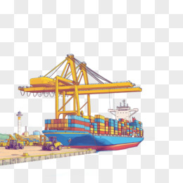 平面插画塔吊正在吊装集装箱到货车上免抠元素