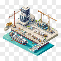 平面插画码头工人在指挥塔吊吊起集装箱免抠元素