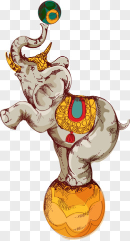 矢量手绘马戏团大象踩球