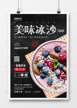 美味冰沙蓝莓冰沙黑色大气西餐下午茶海报