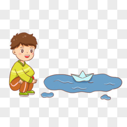 手绘卡通男孩折纸船玩免抠元素