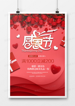 感恩节红色浪漫玫瑰海报