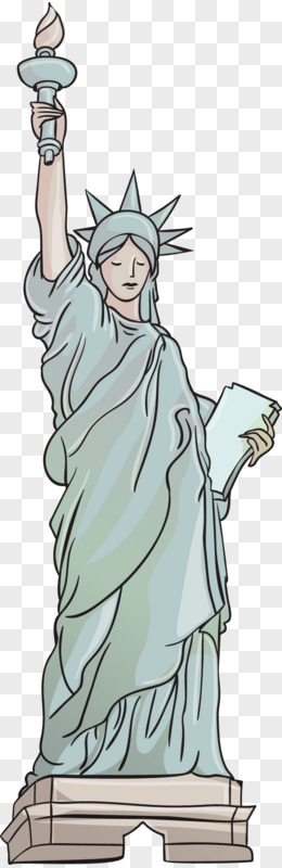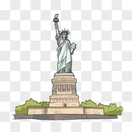 蓝色剪影建筑剪影美国自由女神像免抠元素