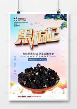 唯美黑枸杞补品美食海报设计