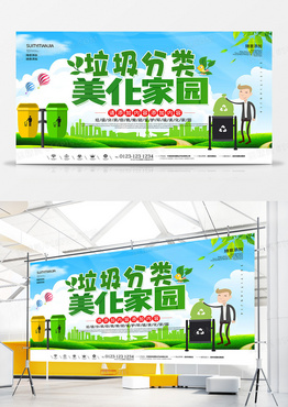 垃圾分类美化家园环保公益展板设计