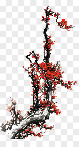 一组矢量手绘梅兰竹菊花卉诗句合成元素之梅花