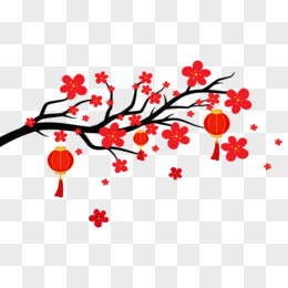 扁平矢量梅花灯笼树枝装饰元素