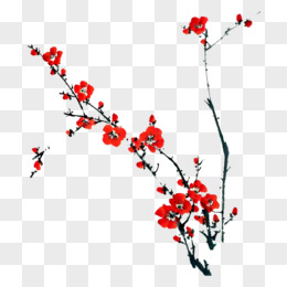 一组手绘水墨梅兰竹菊花卉合集套图元素之梅花