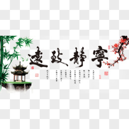 一组手绘梅兰竹菊花卉元素 文字诗句合成元素