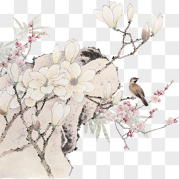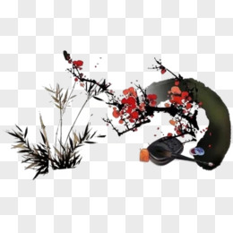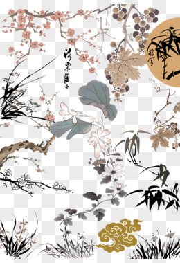 一组手绘水墨梅兰竹菊花卉合集套图元素