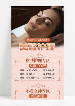 粉色高端美容护理优惠活动手机长图