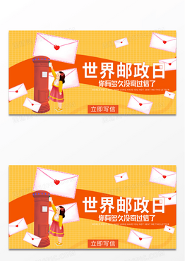 橙色卡通世界邮政日你有多久没寄过信了宣传展板