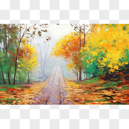 手绘秋色美丽风景