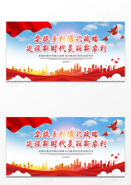 大气红色党建实施乡村振兴战略建设新时代美丽新农村宣传展板乡村振兴标语