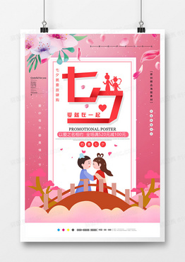 粉色唯美七夕情人节海报模板设计